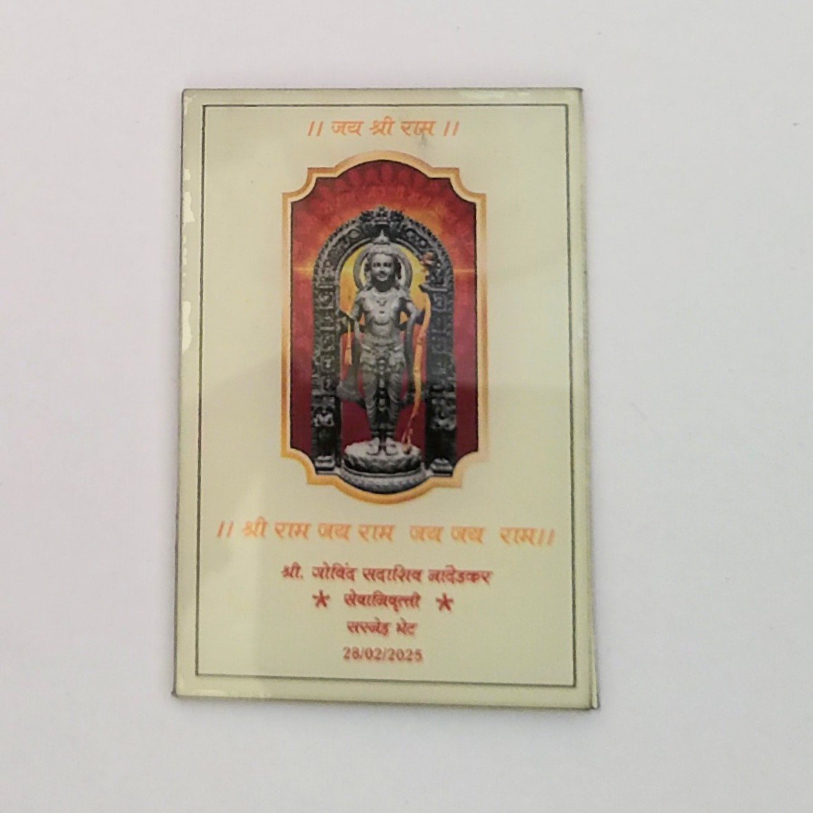 In the uploaded artwork, the deity stands gracefully within a carved arch, surrounded by soft shading and vibrant background hues. The Acrylic Photo Frame intensifies these colors and details while preserving the purity of the devotional text printed below. Whether it includes mantras, dates, event information, or blessings, acrylic ensures everything stays readable, sharp, and visually striking.