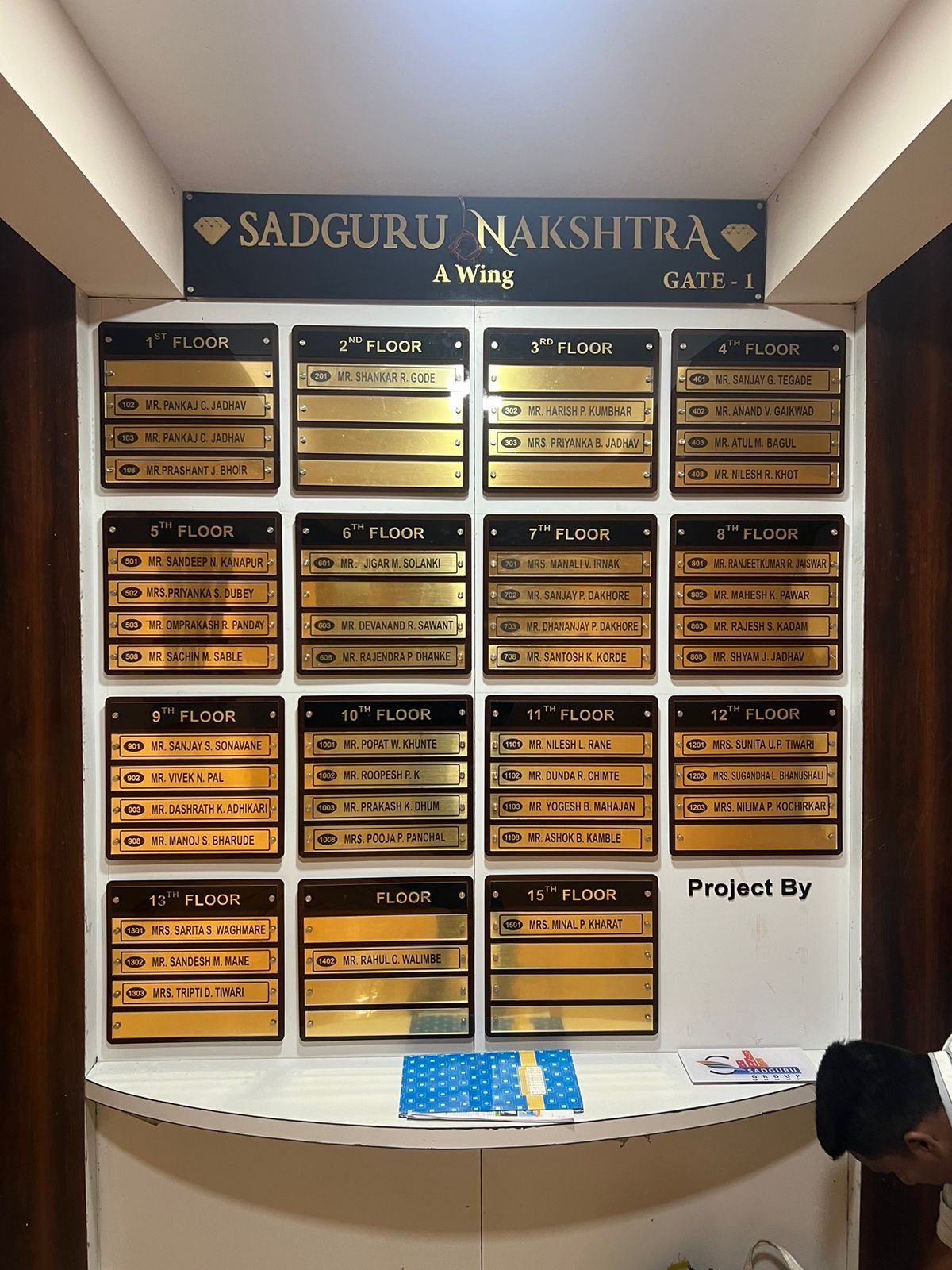 In expansive residential townships, clarity is the ultimate luxury. When a building has multiple entry points (e.g., Main Entrance vs. Rear Entrance), relying on a generic sign can lead to confusion. The Sadguru Nakshatra A-Wing (Gate 1) Edition is designed to eliminate this ambiguity. It clearly identifies the specific access point while providing a comprehensive directory for 15 floors of residents.